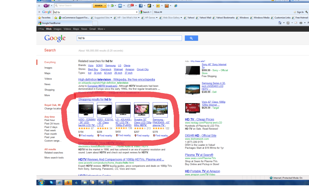 There is a powerful, free, and often overlooked method to get all of your online store’s product listings included, nearly immediately, in the Google search results pages, on page one. Β It’s called Google Product Search and you see it on many product searches that you do on Google. Β It’s part of Google ongoing quest to provide a more varied search results by integrating its products like Google News, YouTube (which Google actually owns) videos, and Google Local into those results. WalMart, Target, Amazon, eBay -anybody that is anybody in retailing has a data feed in Google Product Search.